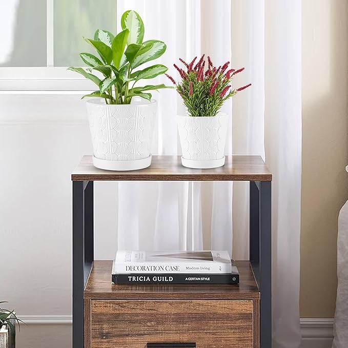 - Superior Drainage System: Each pot is designed with drainage holes to prevent waterlogging, ensuring your plants receive optimal drainage for healthy growth. The matching saucer catches any excess water, helping to keep your surfaces dry and simplifying plant care