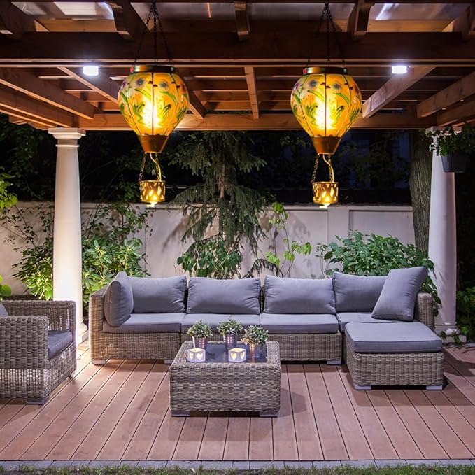 - Starsoul Frog Hot Air Balloon Solar Lantern with Candle Holder Glass Outdoor Solar Hot Air Balloon Flickering Flame Lamp Hanging Garden Light Waterproof for Lawn Porch Tree Yard Decorations