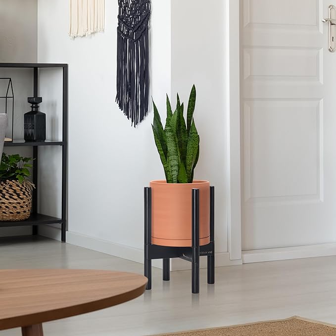 • A Complete Set: Mid-century terracotta planter, combined with a ebony wood stand that match perfectly together and looks great in anywhere.