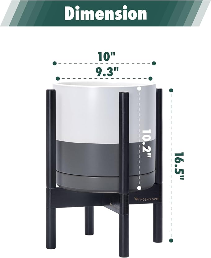 • 10 Inch Pot with Stand Set: Planter size: 10"Diameter x 10.2"H; pot with stand total height: 16.5 inch.