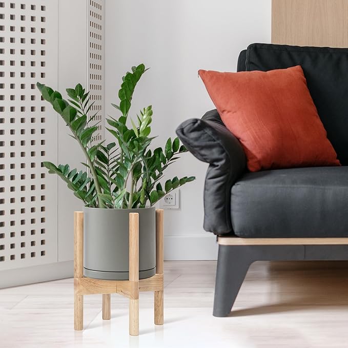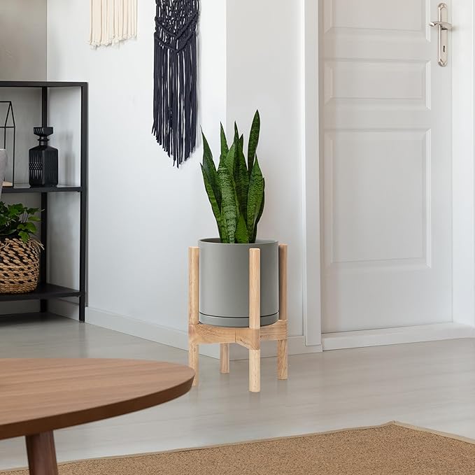 • A Complete Set: Mid-century ceramic planter, combined with a natural color, sculptural, solid wood stand that match perfectly together and looks great in anywhere.