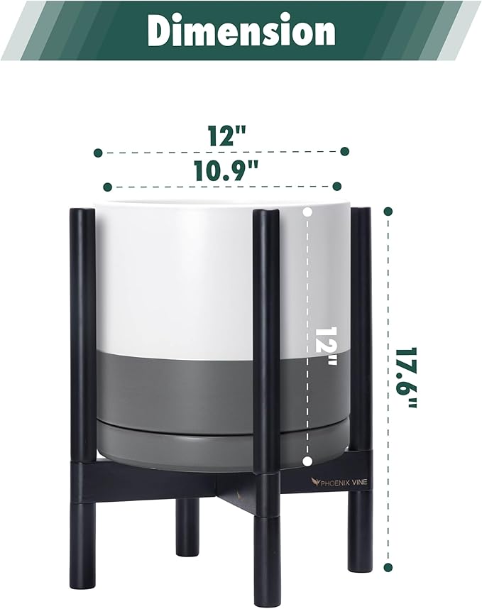 • 12 Inch Pot with Stand Set: Planter size: 11.8"Diameter x 11.8"H; pot with stand total height: 18.5 inch.