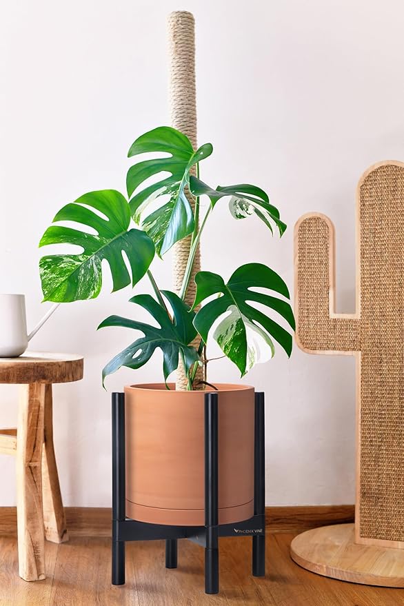 • A Complete Set: Mid-century terracotta planter, combined with a ebony wood stand that match perfectly together and looks great in anywhere.