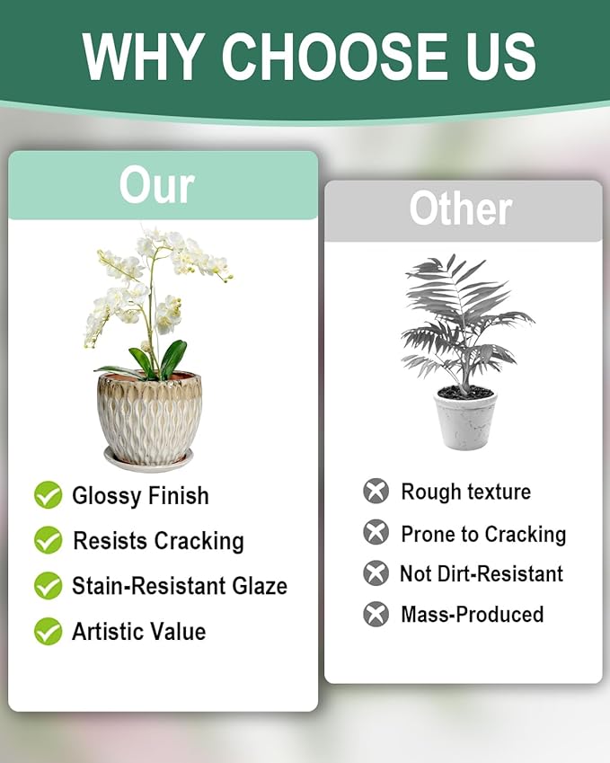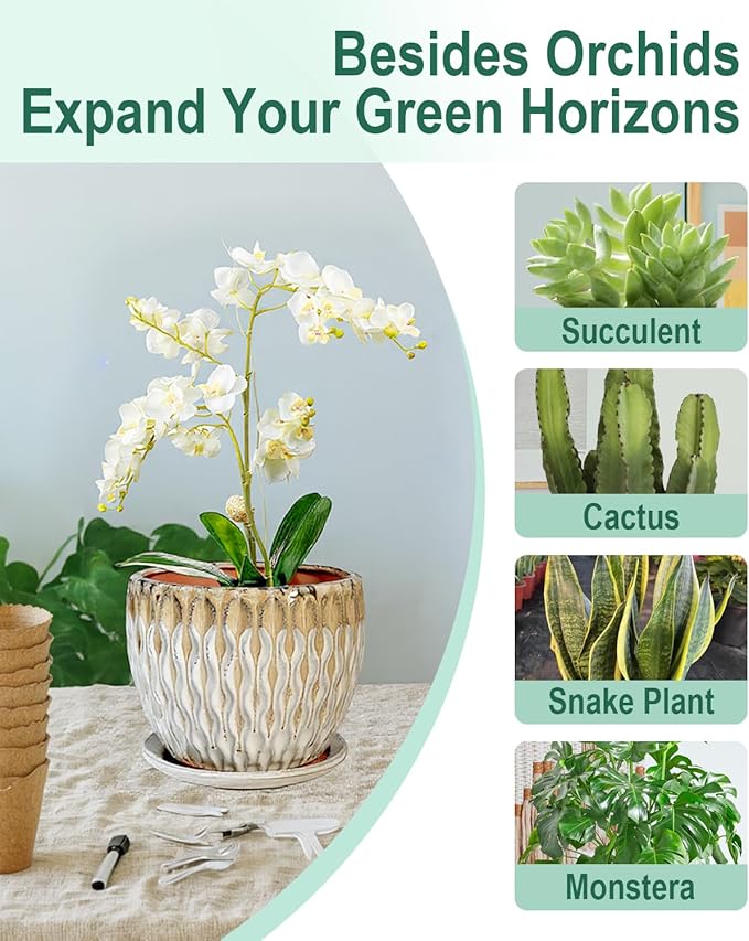 • 【Drainage Hole and Saucer】This 7.5 inch ceramic orchid pot includes a built-in drainage hole and fixed saucer. It helps manage excess water and supports better growing conditions for orchids and indoor plants