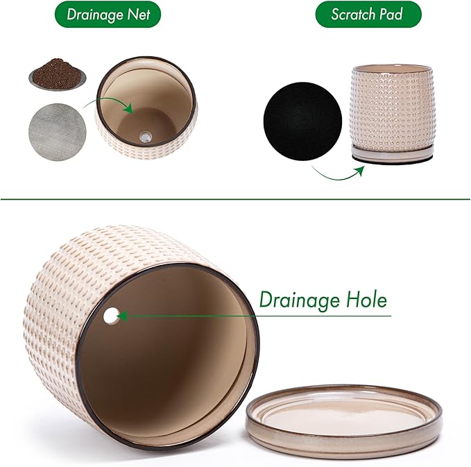 • Included: Each pot comes with drainage hole and fitting detachable drip tray.