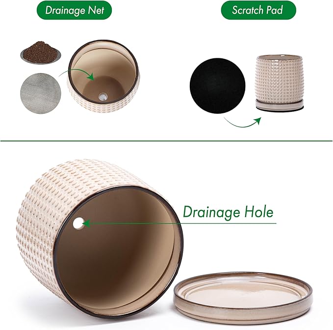 • Included: Each pot comes with drainage hole and fitting detachable drip tray.