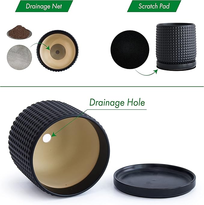 • Included: Each pot comes with drainage hole and fitting detachable drip tray.