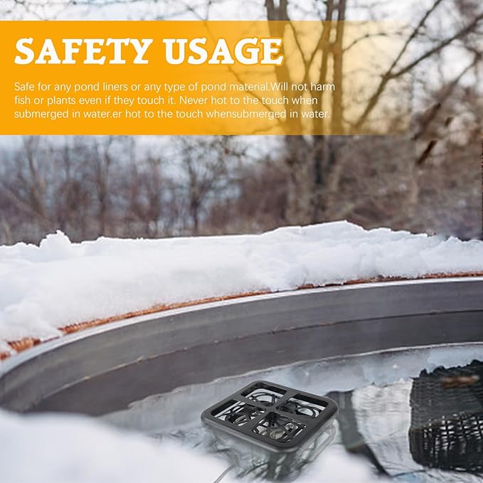 • Effective Pond Heater: This pond heater is designed to prevent outdoor ponds from freezing over during harsh winter conditions.