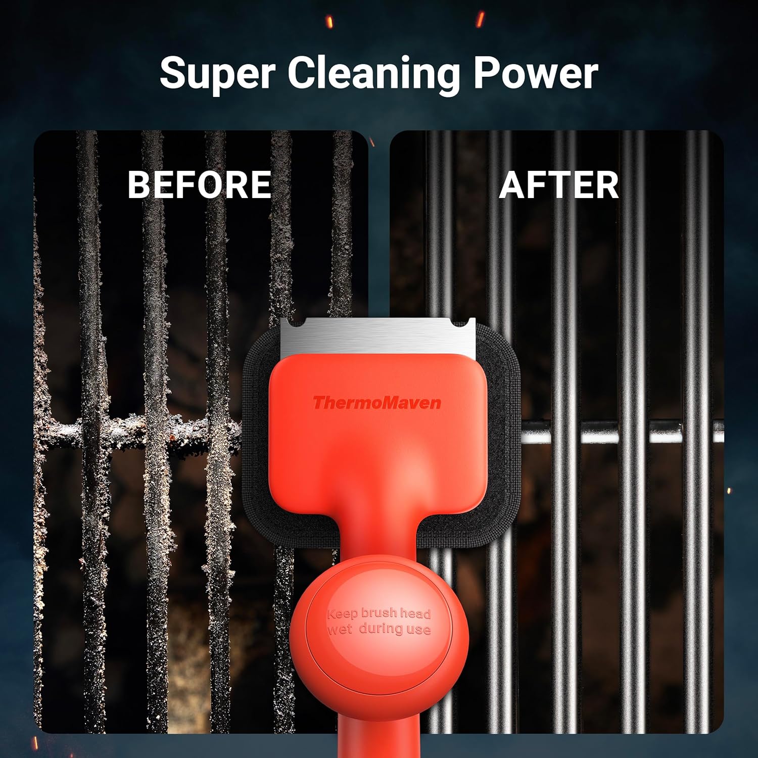 - ๐๐๐๐ข๐๐ข๐๐ง๐ญ ๐๐ซ๐ข๐ฅ๐ฅ ๐๐ซ๐ฎ๐ฌ๐ก ๐ฐ๐ข๐ญ๐ก ๐๐๐ซ๐๐ฉ๐๐ซ: The ThermoMaven grill brush is equipped with a versatile thick and stiff scraper, designed for Porcelain / Gas / Charcoal Grill and flat top griddles