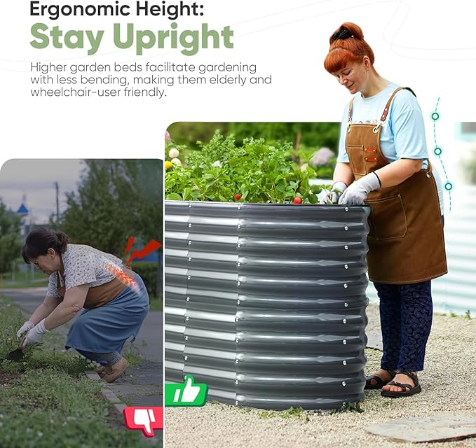 - 【32-Inch Height & Comfortable Gardening Companion】Say goodbye to backaches from gardening! Our 32-inch tall raised planter box provides ample space for root growth, ideal for planting deep-root vegetables and fruits like potatoes, carrots, and beets. It's extremely user-friendly for people with back discomfort, the elderly, and wheelchair users. Additionally, this height helps protect your crops from small animals.