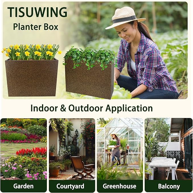 - [Wide range of uses]: The tall planter box is suitable for outdoor/indoor decoration with its modern style, adding a touch of beauty to garden, entrance, front porch, balcony, patio, deck or indoor hall.