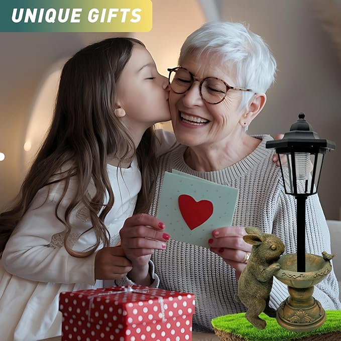 - 【POPULAR & IDEAL GIFTS】 This outdoor rabbit statue is an ideal gift for housewarming parties, birthdays, Mother’s Day, or any special occasion. Its unique design and functional solar lighting make it a heartfelt and practical present for women, moms, or anyone who loves animals and garden decor