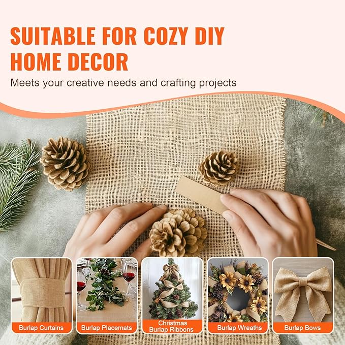 - Home Decoration: Unleash your creativity with this roll of burlap! It's not just a roll, it's a canvas for your imagination. From crafting placemats, bows, wreaths, Christmas ribbons, to making gift bags, it's the ideal material to add a charming touch to your kitchen and home. Burlap material's natural texture brings a cozy, country vibe to any event or home space. It adds a warm, vintage feel that will impress your guests.