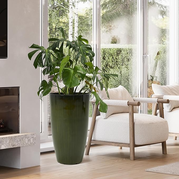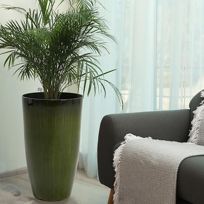 • DURABLE DESIGN: Made of weather-resistant plastic, these planters can withstand rain, sun and other outdoor elements while retaining their vibrant color and shine; These large plant pots are lightweight yet sturdy for indoor or outdoor decorative use