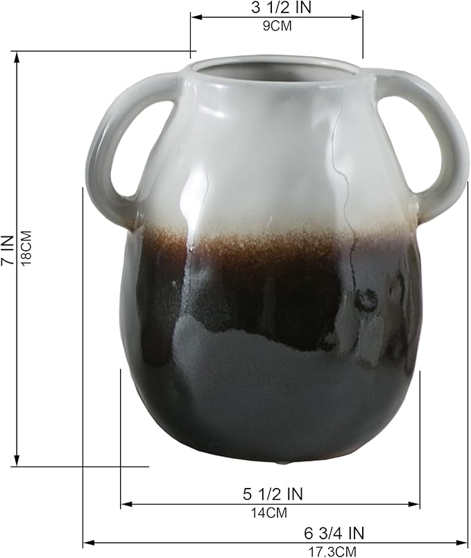 • High-Quality Ceramic - The Tanvecle White Gradient Ceramic Vase is made with high-quality ceramic, offering a sleek finish and long-lasting durability. Size: 6.75"L x 5.5"W x 7"H with a 3.5" opening.