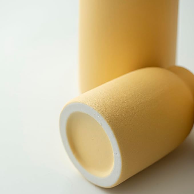 Ceramic Vase Set-3, Small Flower Vases for Decor, Modern Boho Farmhouse Style, Decorative Vases for Pampas Grass & Dried Flowers, Distressed Finish (Yellow)