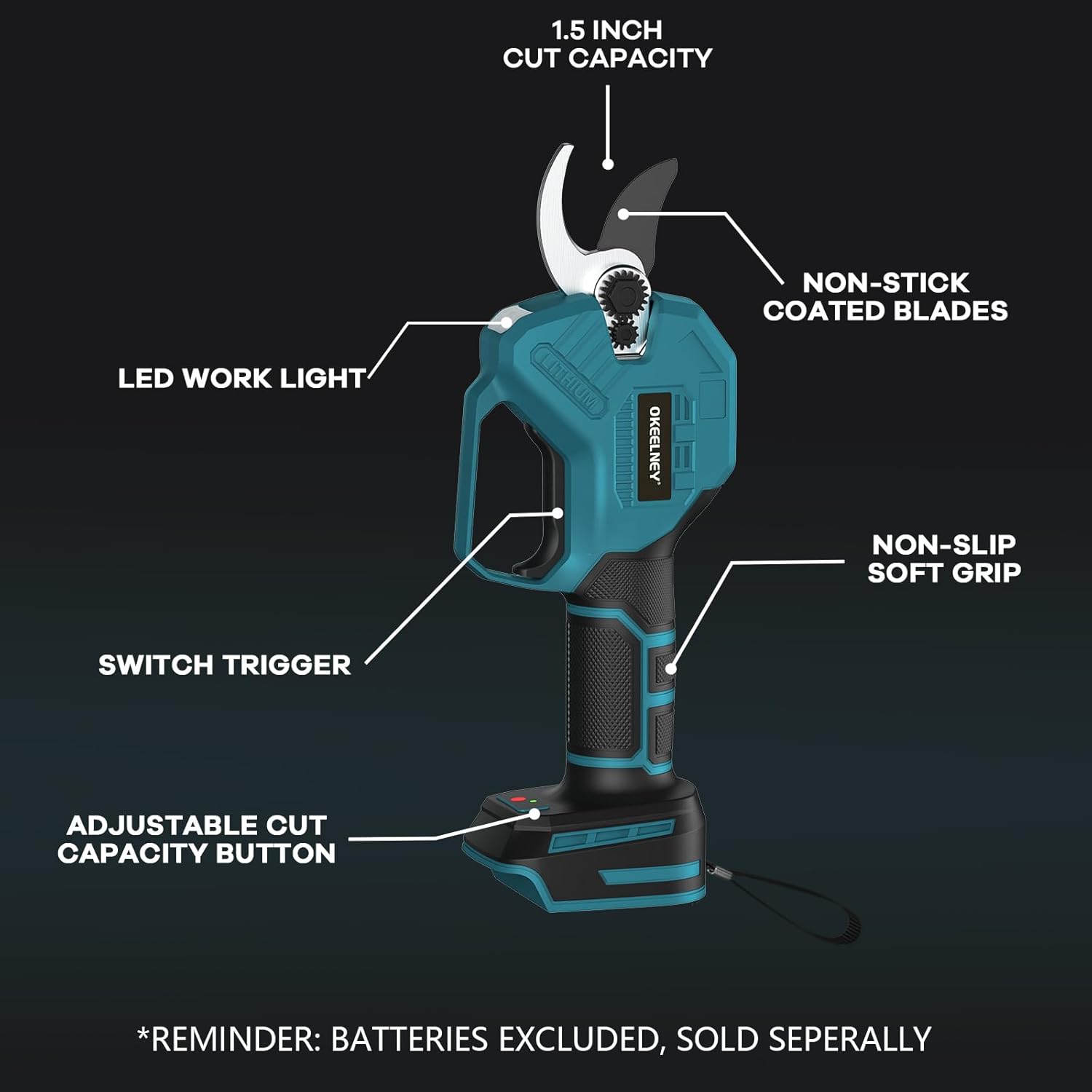 - 【Compatible With Makita 18V Batteries】The Okeelney Electric Pruning Shears feature seamless integration with the Makita 18V battery platform (tool-only configuration; battery excluded), enabling cost-efficient operation through compatibility with genuine batteries and chargers