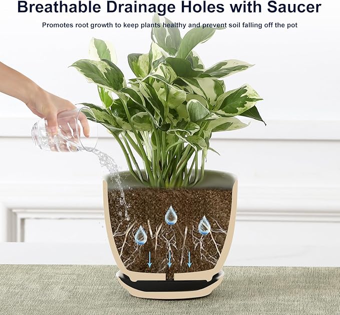 - Ceramic Plant Pots with Drainage Hole: Each small plant pot measures 4.7’’W*3.7’’H , which is the ideal for growing small and medium sized plants, such as succulents, snake plants, cactus, orchid and small flower. The flower pots has a central drainage hole and saucer to ensure adequate drainage and ventilation to avoid root rot, and include a 1.7 inch diameter mesh to prevent soil from falling out