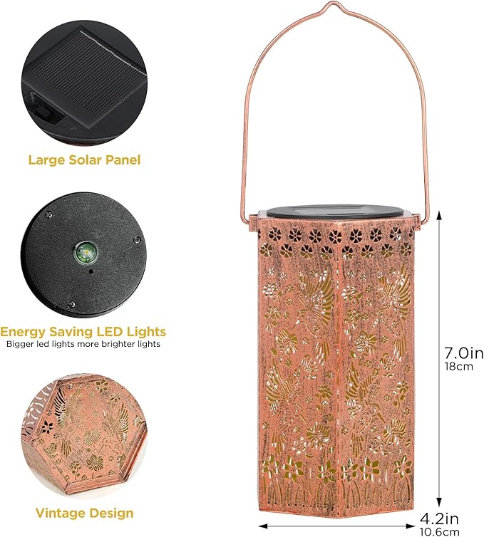 - 【PERFECT GARDEN DECORATIVE LIGHTS】 - Hummingbird solar lights can cast a unique and beautiful pattern in a dim environment, create a gorgeous and warm atmosphere for your garden, bring vitality and fun to your life. The unique design and beautiful bronzer give it an artistic feel, perfect for decorating gardens, backyards, front doors, outdoors, sidewalks and many other scenes.