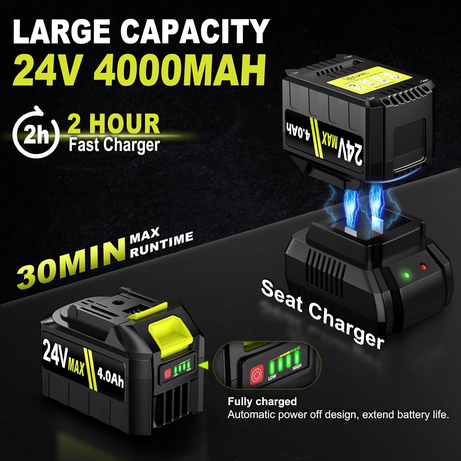 - 【Package Contents & Warranty】 The package includes 1*leaf blower body, 1*blower tube, 1*extension nozzle, 2*24V-4.0Ah batteries, 1*Fast charger, 1*user manual. We provide you with 2 years warranty. If any problem, please feel free to contact us. We are on standby for everyone - reach out anytime for support.