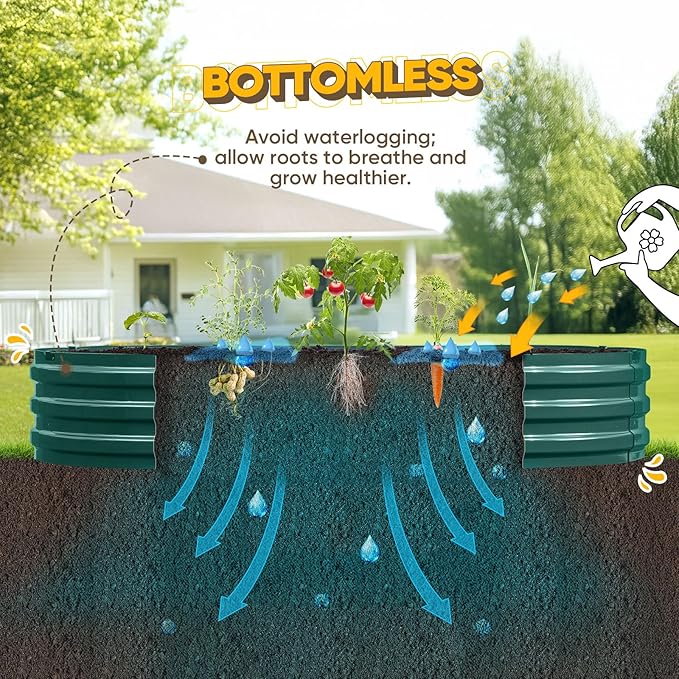 - 【Safe Rolled Edges】The edges of the metal raised garden beds are meticulously crafted with a rolled edge process, eliminating sharp edges to ensure your hands stay safe from cuts during assembly and planting, letting you safely enjoy the pleasure of gardening.
