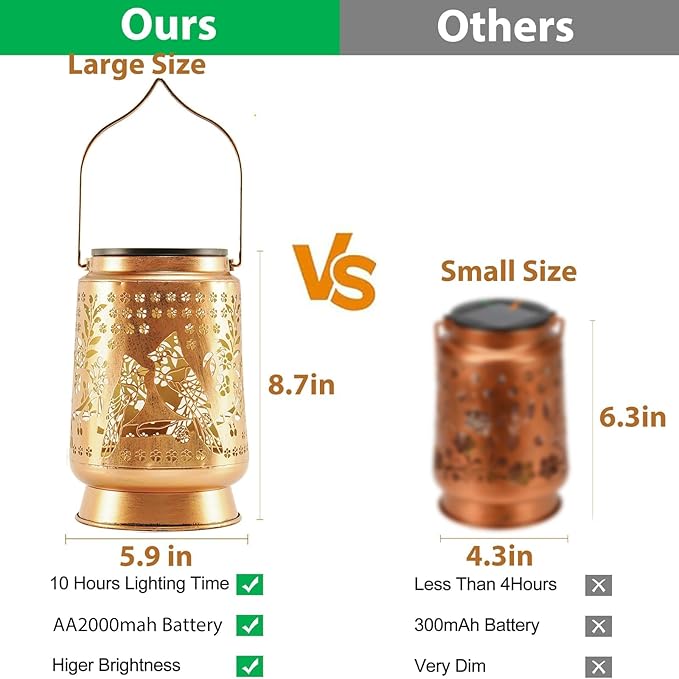 - [Exquisite Decorative Design]: The solar lanterns outdoor hanging with its elegant appearance and exquisite hollow-out design, adds a unique decorative charm to outdoor spaces. Whether placed on tables or the ground, it perfectly complements Yard, Patio, garden