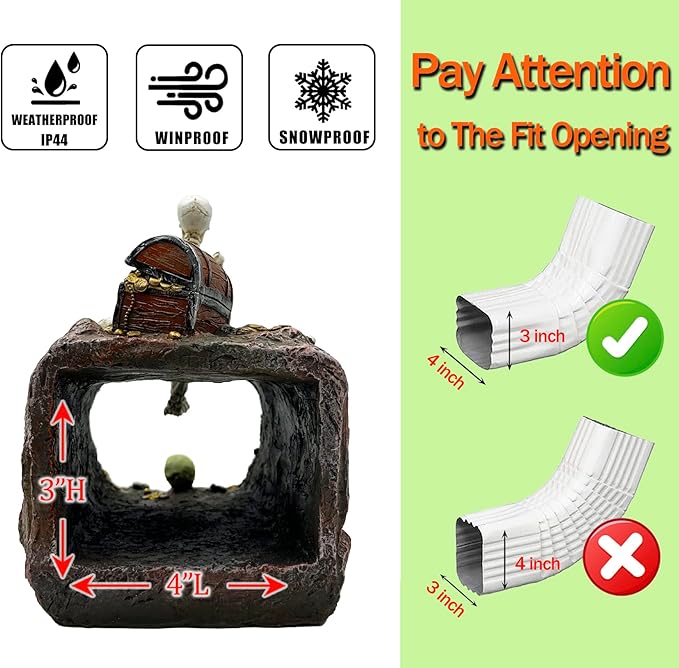 Luminous Skeleton Sculpture Gutter Downspout Extender,Garden Statue Ornament,Decor Downspout Diverter,Perfect Rain Diverter for 3"x4" Downspouts, Eco-Friendly Resin,Perfect Outdoor Decor Gift