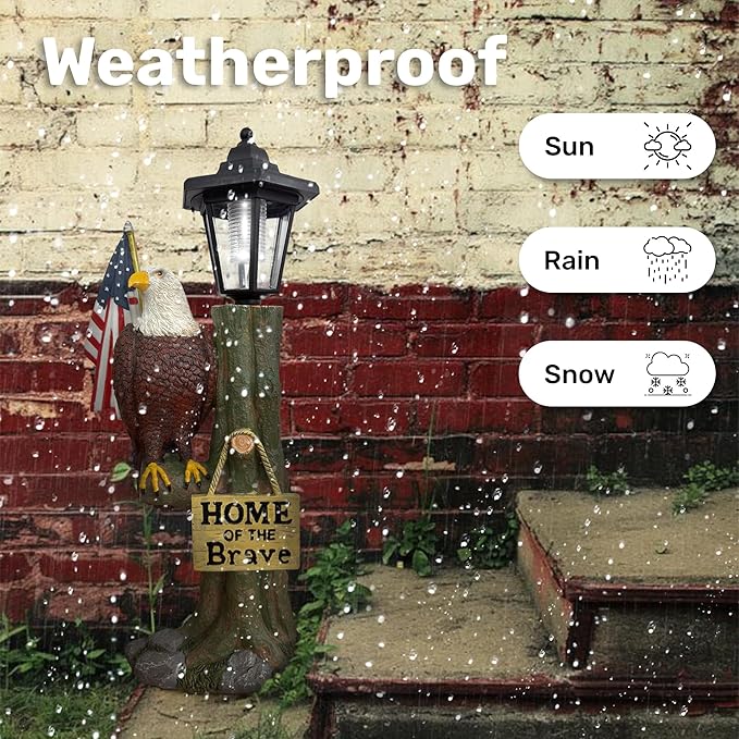 - VERSATILE OUTDOOR DECORATION: Enhance gardens, patios, or backyards with this eagle statue. Its bold design adds a patriotic touch and suits various styles. Secure it on uneven surfaces by digging a hole or placing heavy objects for stability.