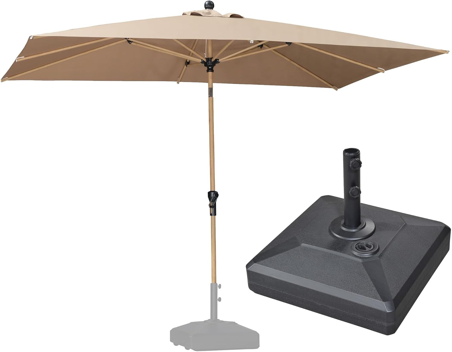 PURPLE LEAF 6' x 9' Patio Umbrella with Base Market Umbrella Rectangular Outdoor Umbrella with Push Button Tilt & Crank and 8 Ribs Aluminum Table Umbrella for Pool Backyard Beach, Taupe