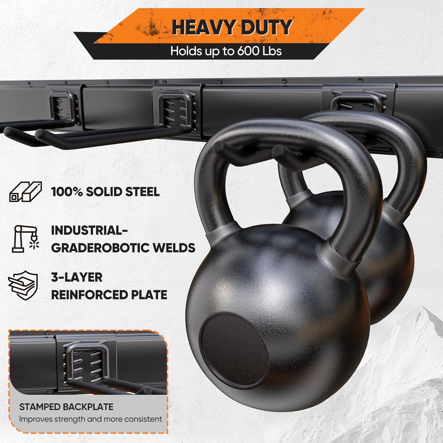 - Simple Design, Powerful Performance: Nacial garage organizer wall mount heavy duty combine simple design with ultimate durability, crafted from premium heavy-duty solid steel, supporting up to 600 lbsβtwice the strength of standard hooks. Each rail and hook features a 3-layer reinforced plate, shaped through over 20 precision steps and strengthened at high temperatures for 4 hours for superior load capacity. Nacial Simple DesignβGreat Hook Come with Great Performance