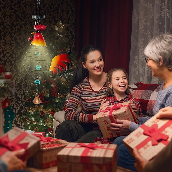 Solar Garden Decor for Outside, Solar Lanterns Outdoor Waterproof, Chicken Lamp Hanging Light for Porch Decoration, Yard Art, Unique Wind Chimes Gift for Women Mom Grandma