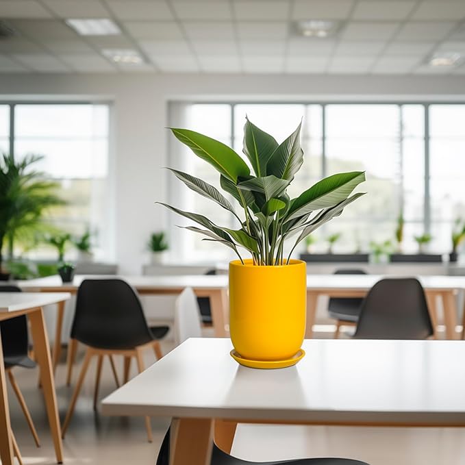 Plant Pot 8 Inch - Ceramic Plant Pot with Drainage Hole and Saucer Large Planter for Indoor Plants Outdoor Modern Flower Pot for Home Garden Decor Yellow