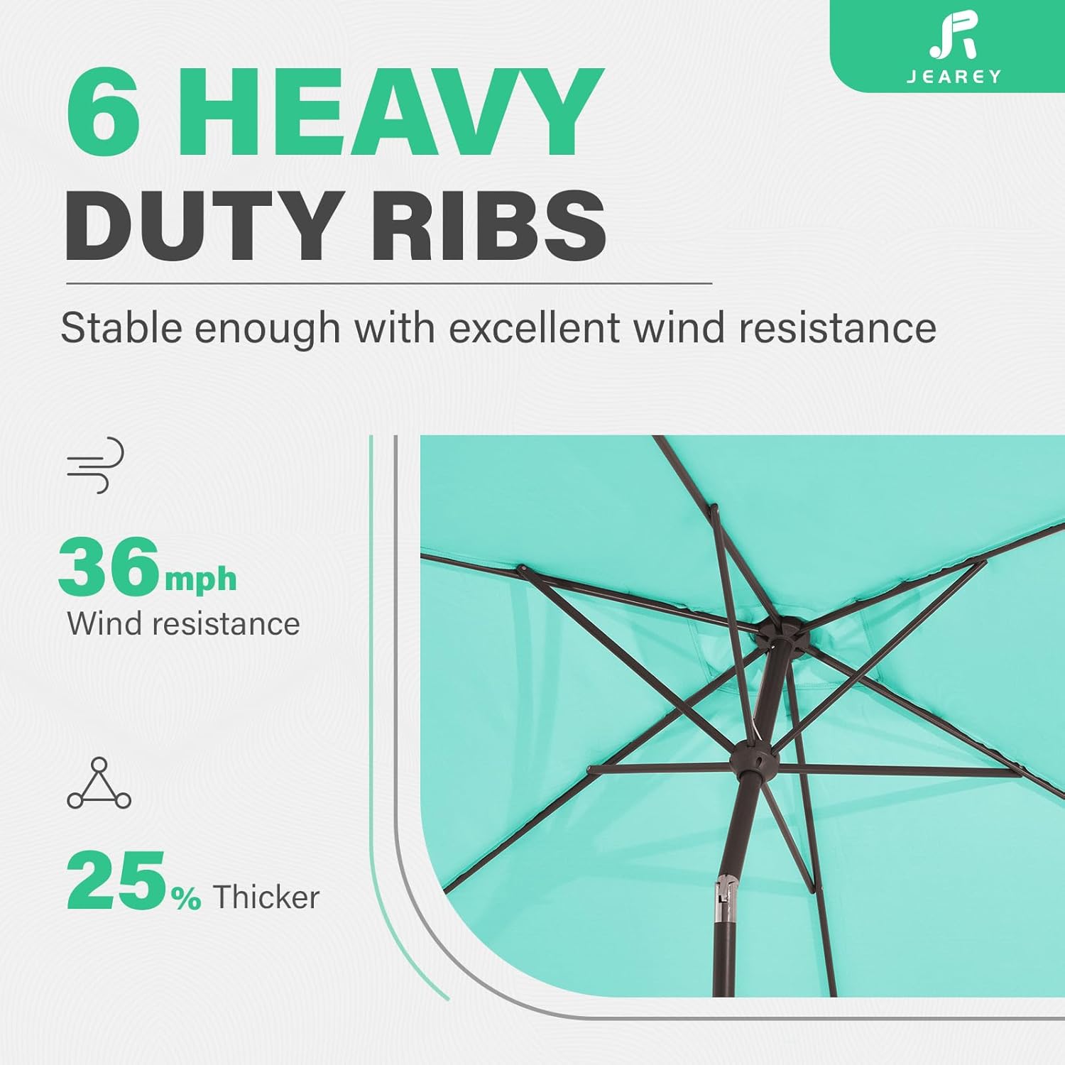 - 【WIDE SHADE】- The size of JEAREY rectangular patio umbrella is 6.5' x 10'. The rectangle design is beautifully styled and has a wide range of shade space, which can accommodate a table and chairs for 4-6 people