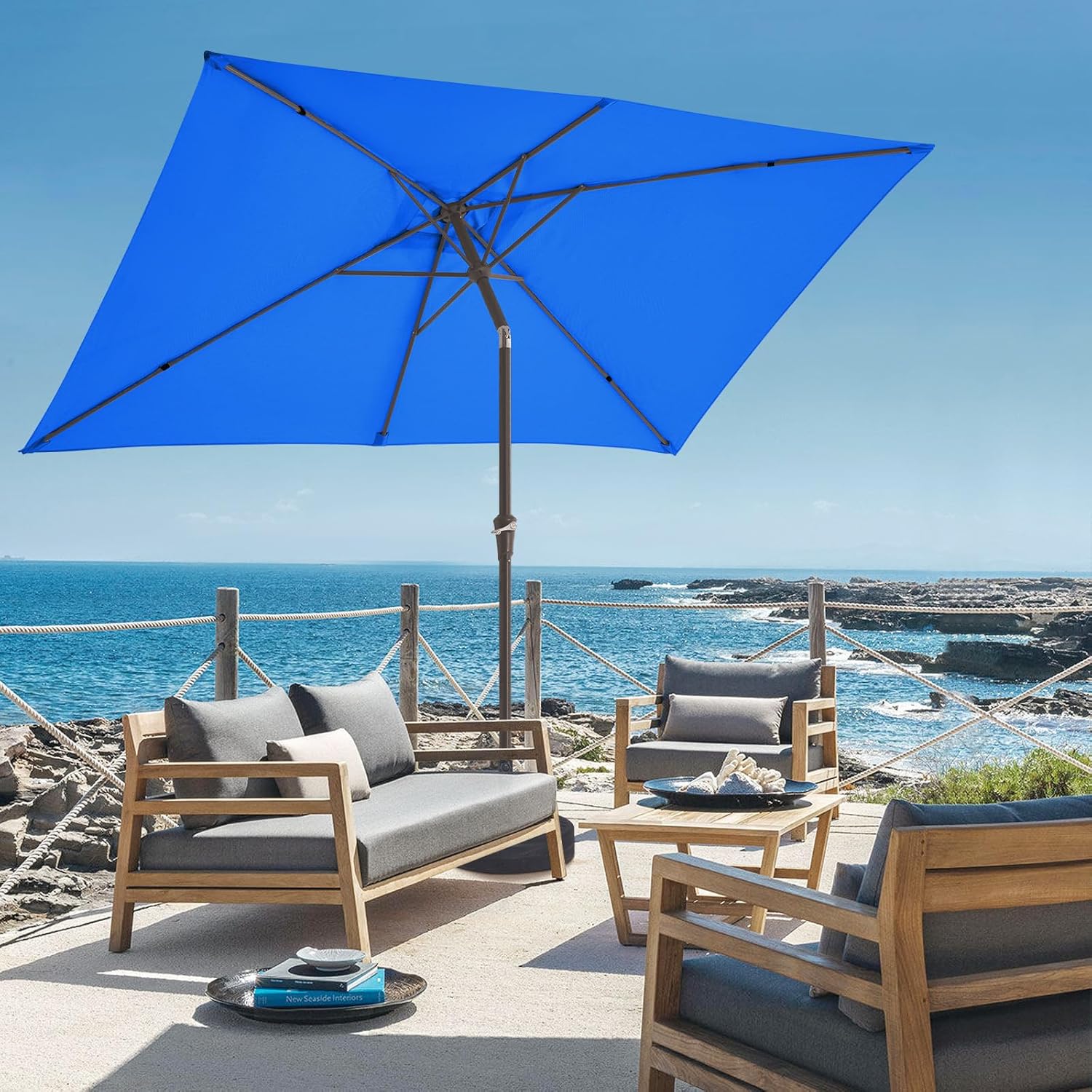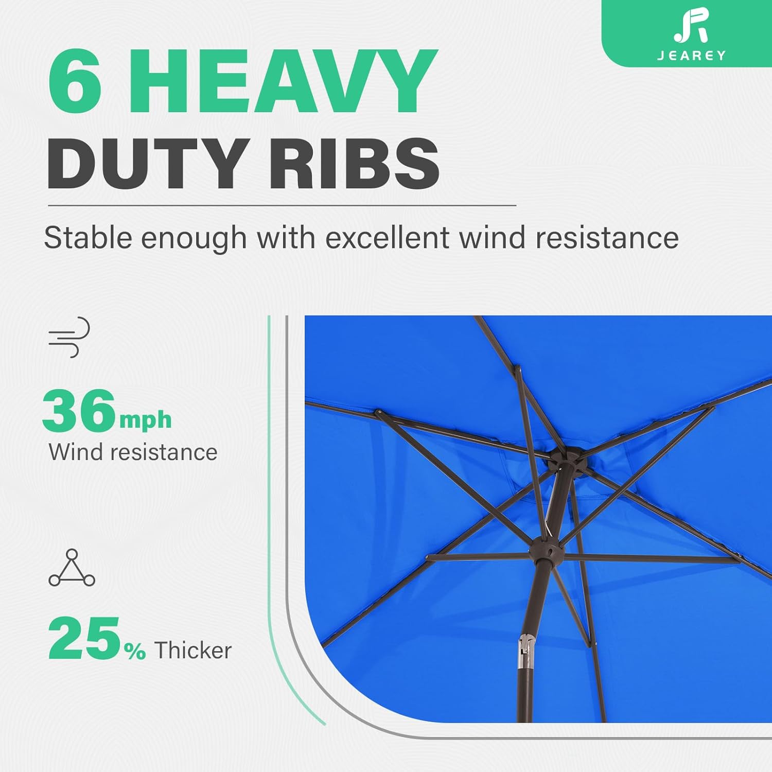 JEAREY 6.5x10 ft Rectangular Patio Umbrellas Outdoor Market Umbrella with Push Button Tilt and Crank, Rectangle Table Umbrella 6 Sturdy Ribs UV Protection for Pool Garden Backyard Deck, Royal Blue