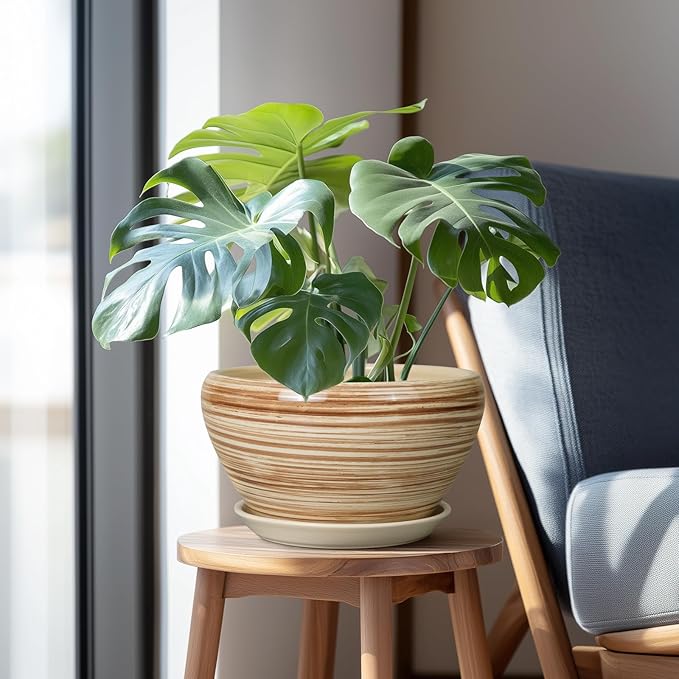 - 11 Inch Plant Pot: The ceramic pots for plants are high-temperature fired stoneware which is durable lightweight and convenient for you to use