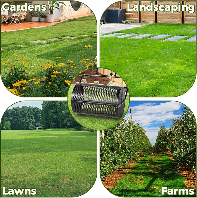 - Multifunctional Spreader: The spreader for lawn is designed with precision, featuring 0.5" x 0.75" mesh holes that ensure an even distribution of spreading materials. Providing large space for spreading a variety of materials, such as manure, sand, compost, etc