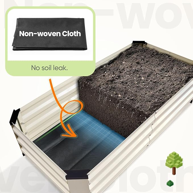 - 【Built-In Non-Woven Layer, No Soil Leaks】Say goodbye to muddy decks and hello to stress-free gardening! The premium non-woven base of our raised garden bed kit acts like a breathable soil guardian, holding soil in place while allowing air and water to flow freely. Perfect for balcony herb gardens, patio tomato plants or indoor flower beds - no more vacuuming spills or scrubbing dirty floors. The non-woven fabric also cushions the galvanized steel base from moisture, doubling the life of the pot.