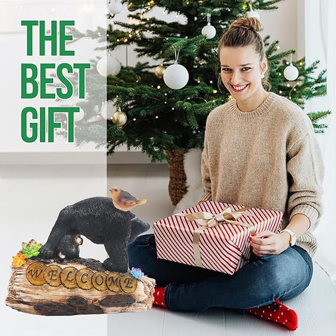 - 【Bear Garden Decorations】: bear resin statue equipped with LED solar lights. cute bear sculpture plays on a tree stump with a welcome sign and flowers on it. As night falls, the welcome sign and a little bird on the bear's back sparkle. The decoration of Sun Bear Garden will definitely add a touch of creativity to your home, suitable for decorating porch, garden, lawn, office desk, etc.
