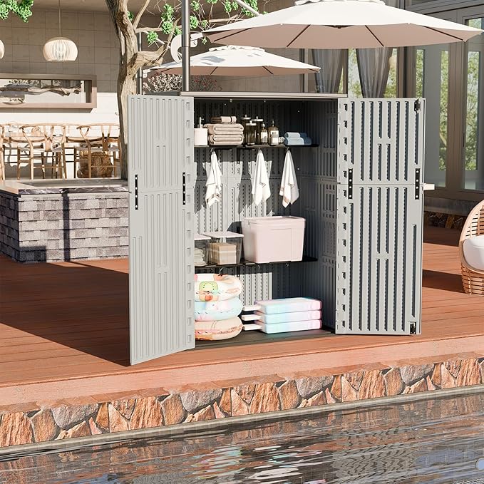 - 【Multi scenario application】This cabinet can be used both indoors and outdoors, providing you with the most convenient, safe, and reliable storage space whether placed on the balcony, garden, doorstep, or by the pool. Due to the double reinforcement of the material, its durability is greatly improved, and it is generally not a problem to use for 10 years.