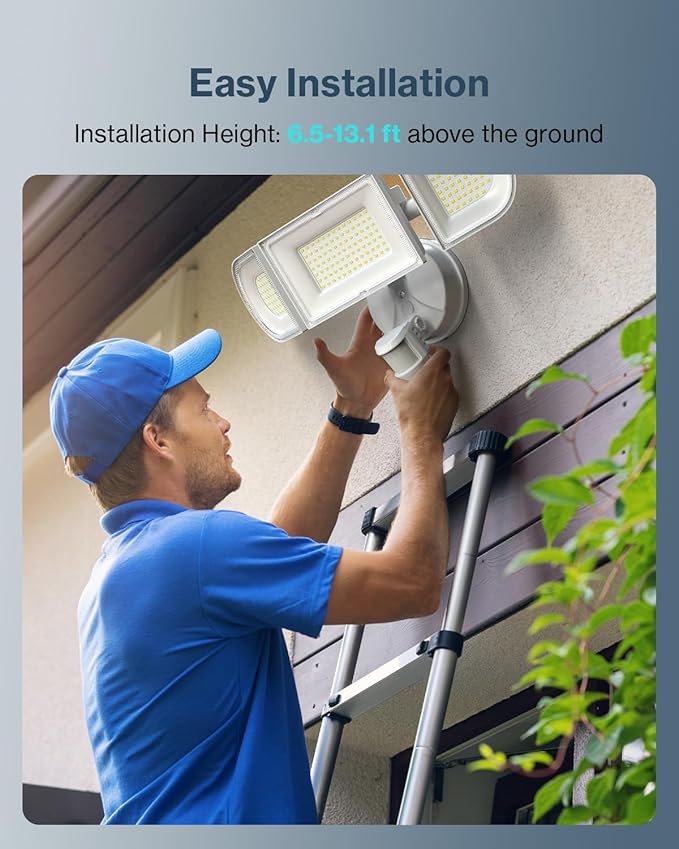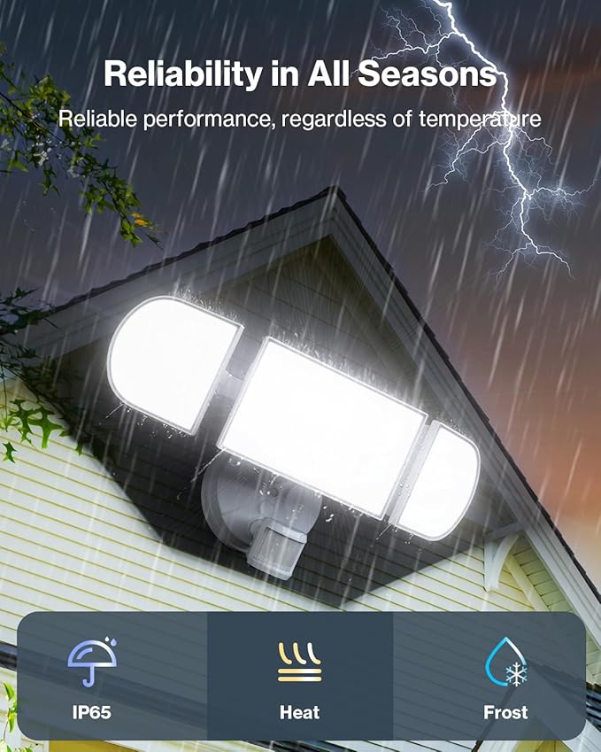 - Built to Last: With an IP65 waterproof rating, these motion detected lights withstand any weather – rain, snow, extreme temperatures, ensuring reliable performance year-round.