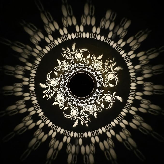 - 【Bee Garden Decoration】The solar outdoor lantern is inspired by animal elements in nature. It projects bright bee patterns in the dark, creating a gorgeous and warm atmosphere and bringing vitality and fun to your garden. It adopts a gold-copper color and hollowed-out metal finish, presenting a retro look.