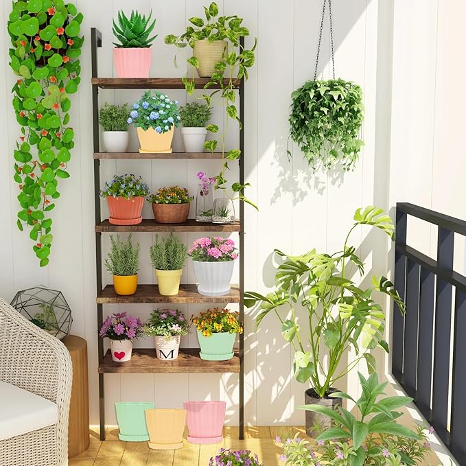 6 inch Flower Pots for Plants with Drainage Holes and Saucer, 5 Pack Plastic Plant Pots Indoor Planters for Outdoor Plants Small Garden House Home Decor, Nursery Pots for Succulent Colorful