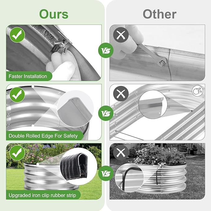 - 【Upgrade Quality & Structure 】The raised garden bed is made of thick galvanized metal with a surface spray coating, which is rust proof and anti-corrosion. Can be used for a long time. The Round design ensures uniform surface force and prevents deformation. More durable than other raised planter box, becoming a good helper for your garden