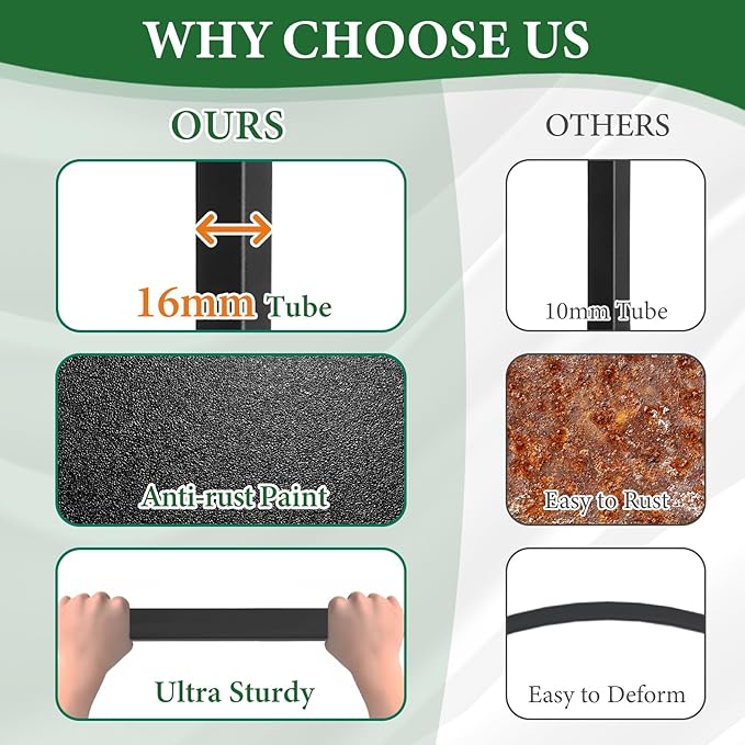 - Durable: Rustproof iron frame with powder coated finish lasts for years. Simply stake into the ground for fast and easy installation, The Long Nails add stable in the soil