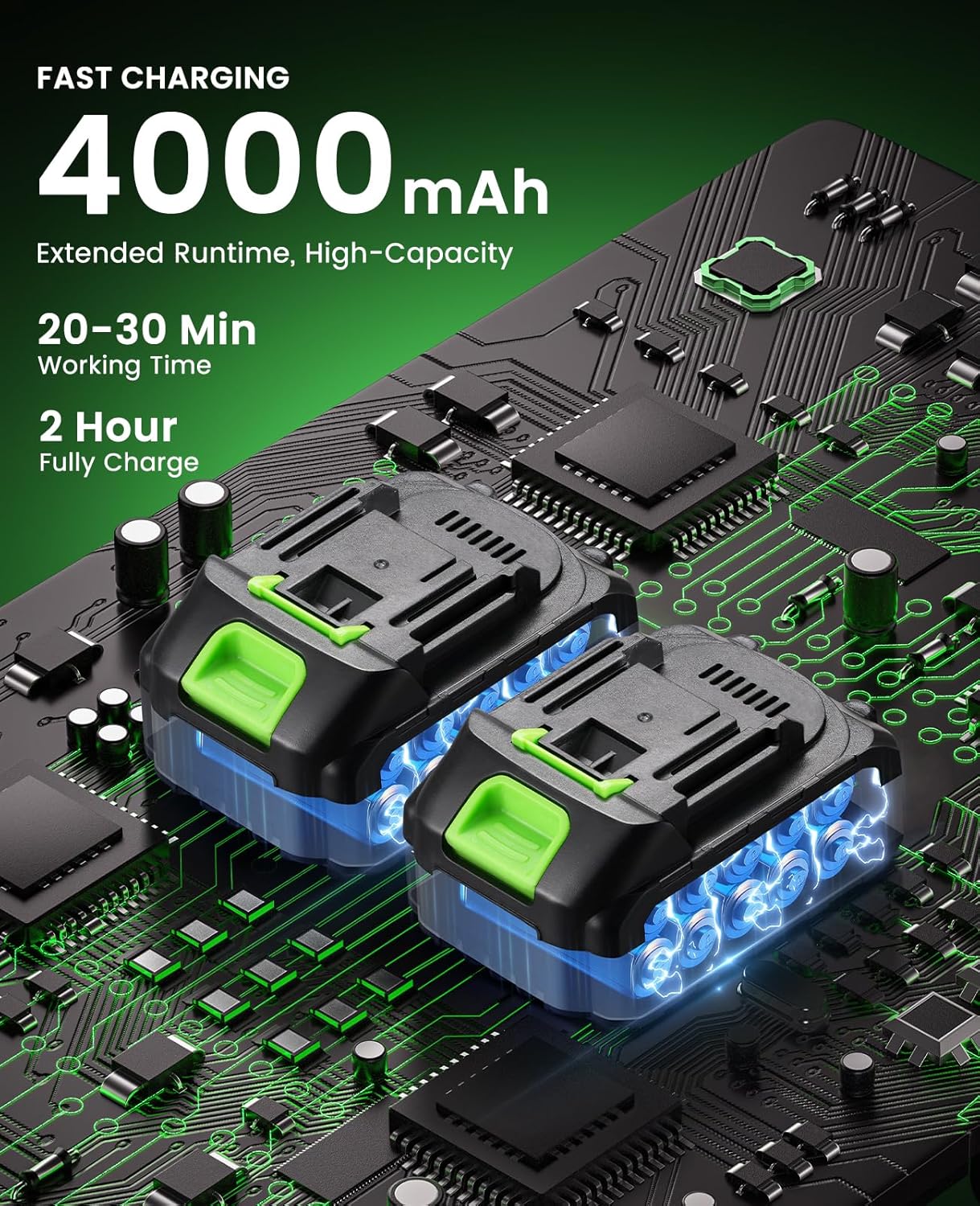 - Safety Protection System: Enjoy peace of mind with our dual-switch system—press the safety lock and trigger together to power on, eliminating accidental starts around children and pets. The reinforced protective cover and anti-splash eyewear work in tandem to safely block flying grass, stones, and debris.