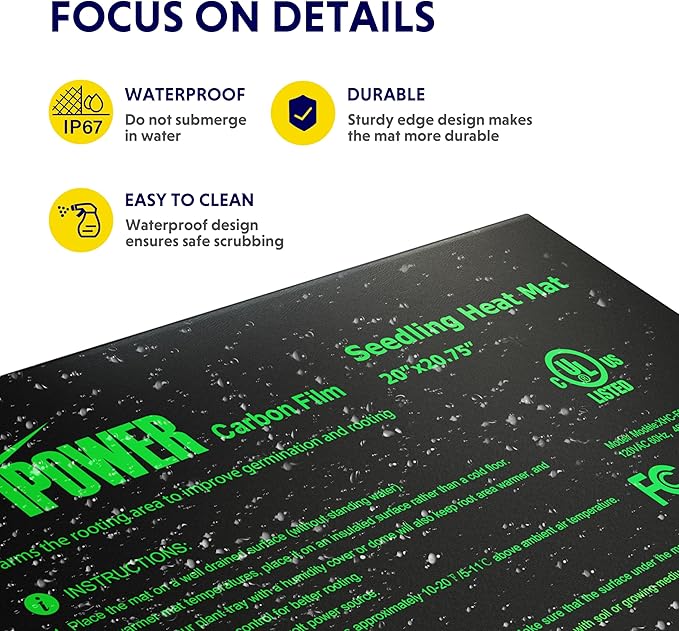 • Heating film structure: heating film ensure uniform heating. Warms root area 10-20℉(5-11℃) over the ambient air temperature, which will increase the success of seedlings and cuttings