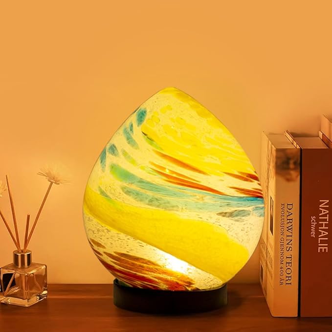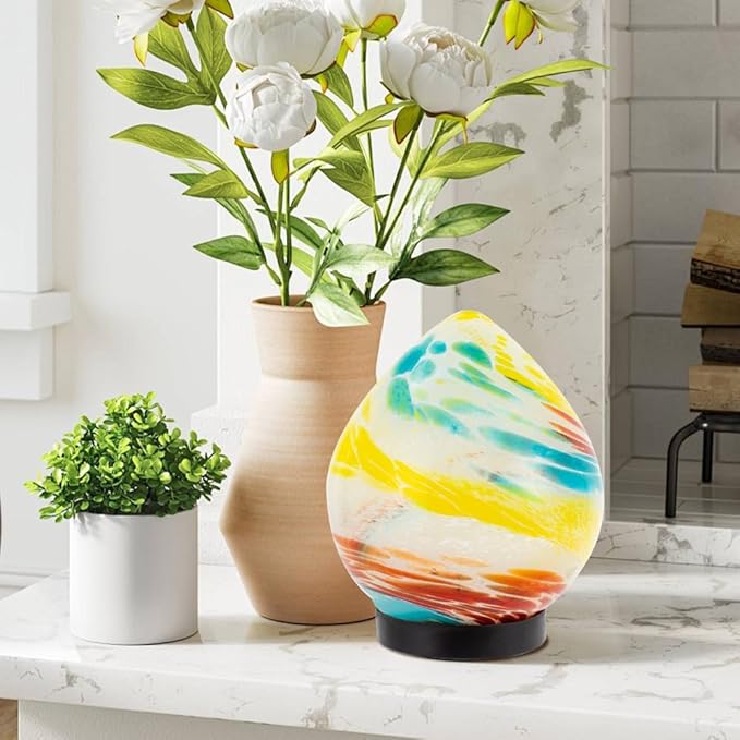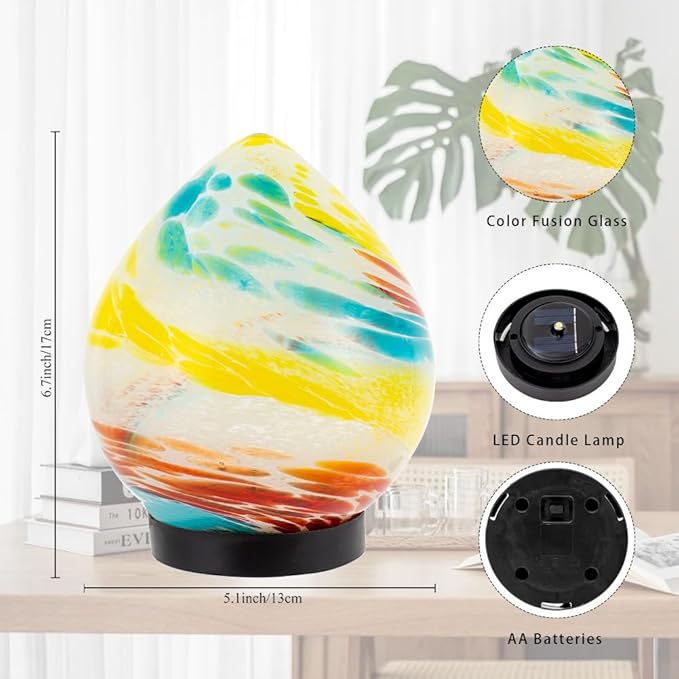 Table Solar Lanterns Outdoor Waterproof LED Garden Decorative Lanterns 6.7" Glass Solar Globe Lights,Outdoor Garden Lights for Patio Porch Table Decor Birthday Gifts for Women(Blue Yellow)