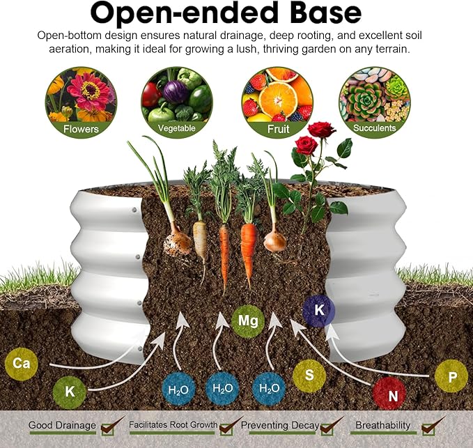 - 【Weather-resistant】The galvanized material of this new raised garden bed is specially treated to resist rain, sun and soil erosion. Even in bad weather, the round galvanized raised garden bed will remain stable, not easy to rust, extending its service life. You don't need to worry about damage caused by weather changes and you can enjoy your beautiful garden for a long time.