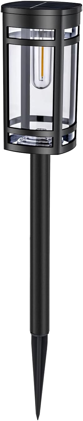 - CONTEMPORARY STYLED: Line borders, paths and driveways in your garden and around your home with contemporary stake lights, for decoration and function night after night; Each light has a vintage-style filament LED bulb that emits a beautiful soft glow; Their black finish not only adds a touch of elegance but also ensures resilience against the elements, promising enduring style and performance