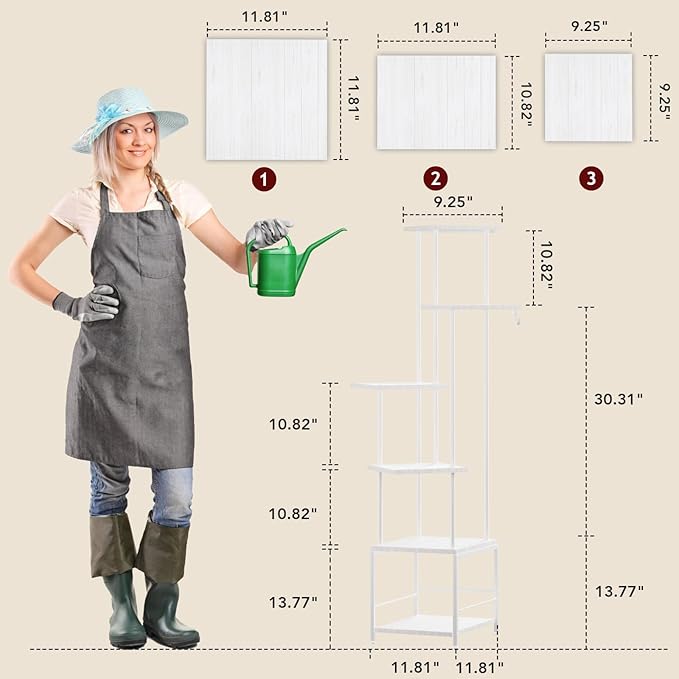 - [Spacious 6 Tiers] This tiered plant stand offers six levels of storage, allowing you to showcase a variety of plants in different heights and styles. The bottom tier features a protective railing to secure pots, while the middle tier includes a side plant holder hook, perfect for hanging baskets. Whether youβre decorating a plant rack indoor or adding greenery to a cozy corner, this stand provides ample space without taking up too much room, making it a must-have for corner plant stands for indoor plants